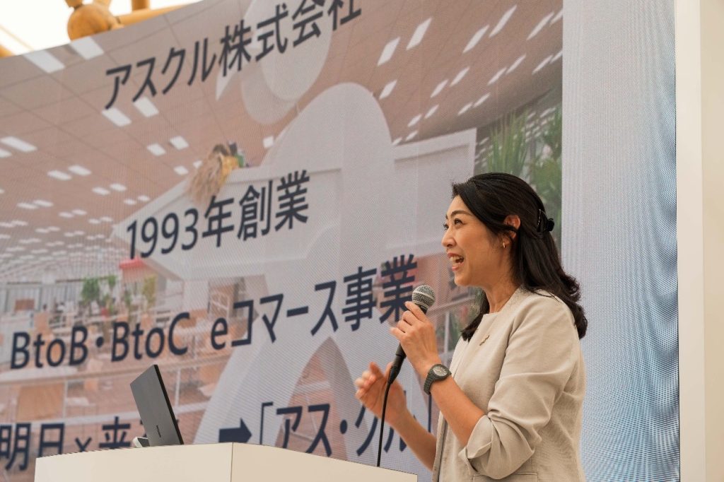 アスクルからは小和田有花さんより、対馬市とのこれまでの協働の歩みをお話ししました。2021年のSDGs連携協定をはじめ、「TSUSHIMA×ASKUL project」として海洋プラスチックの回収・再資源化、再生素材を使った商品の販売、社員が現地で清掃に参加するフィールド体験など、理念を「実際の行動」へとつなげてきた取り組みです。