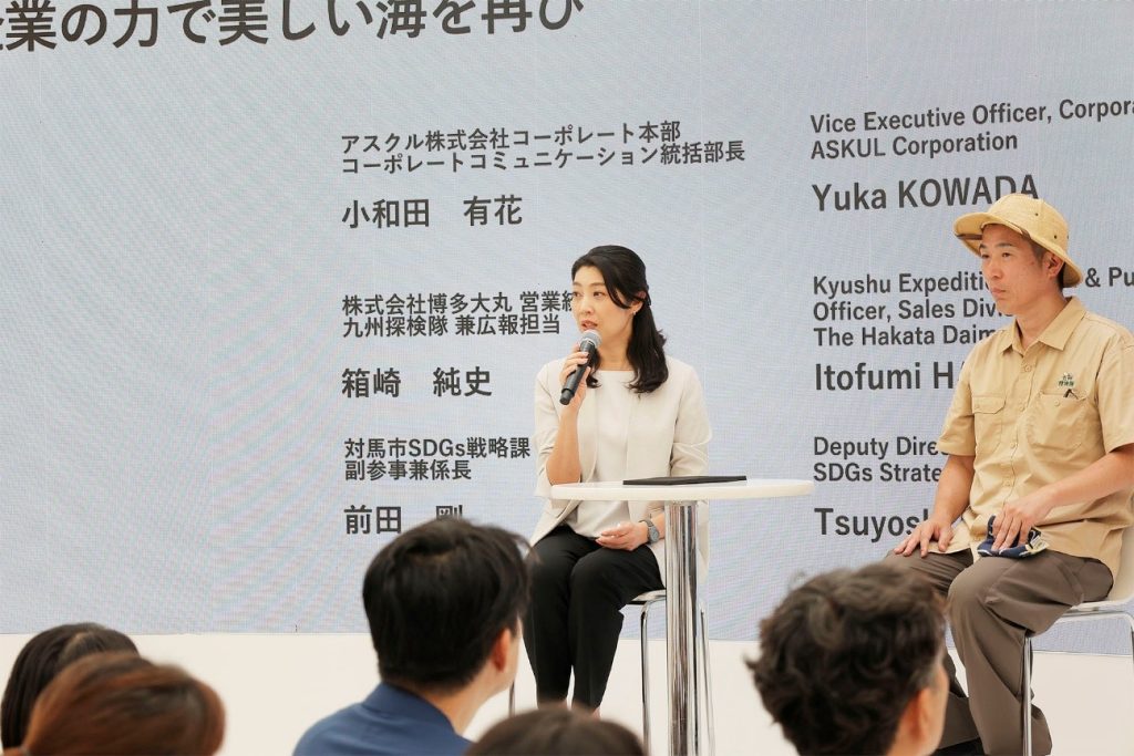 肥田さんは「アスクルでは毎年、社員が対馬市でスタディツアーに参加しています。現地で海洋プラスチックごみを五感で体験することで、遠い島の課題ではなく、身近な問題として捉えることができる。そうした社員が増えることで社内外に仲間が広がり、アクションの連鎖が生まれ始めている」と語りました。